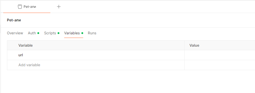 На закладке Variables хранятся переменные: общие для коллекции и уникальные внутри нее.
