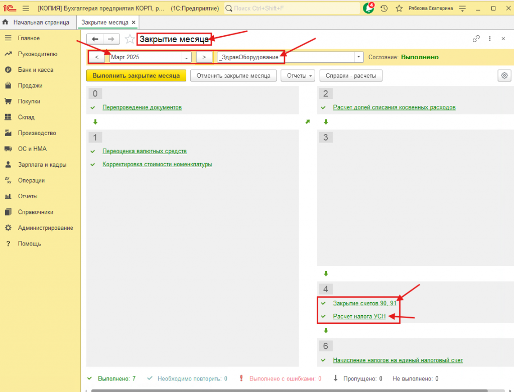 ВАЖНО! Если все хозяйственные операции были проведены корректно, то все операции «Закрытие месяца» должны пройти без ошибок.