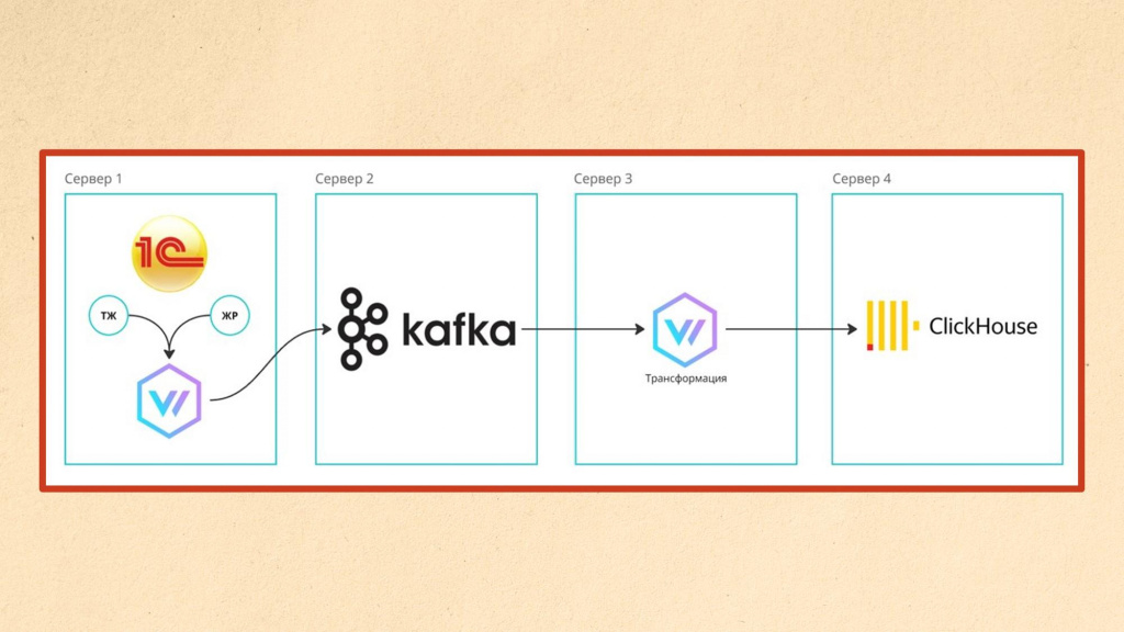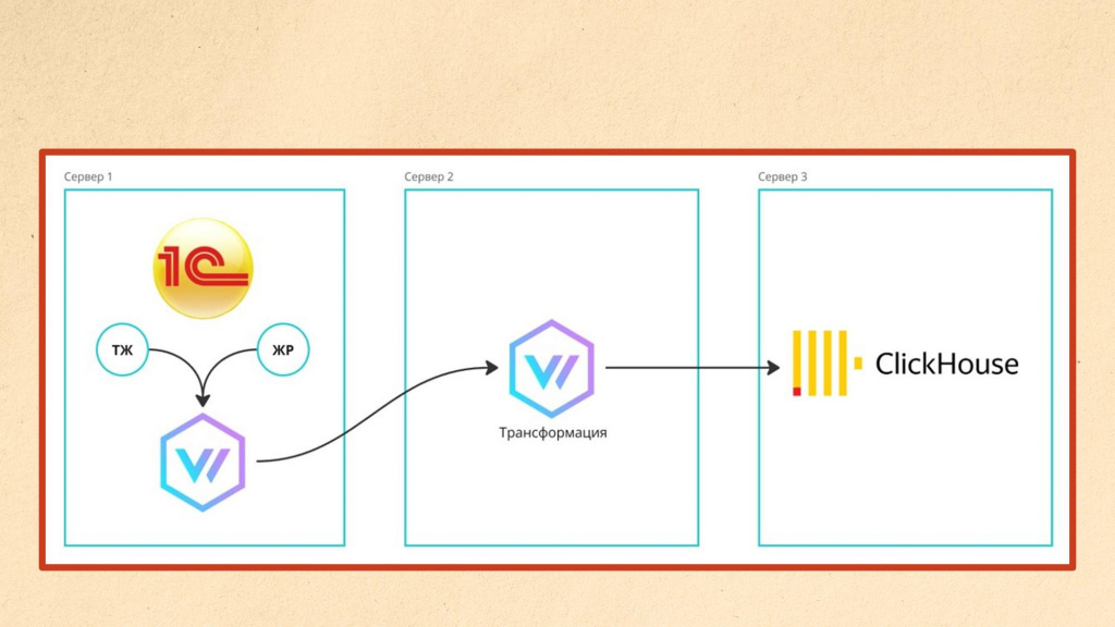 Мы можем дополнительно добавить сервер трансформации и тоже развернуть на нем Vector, чтобы принимать данные от другого Vector’а, установленного на сервере приложения 1С.