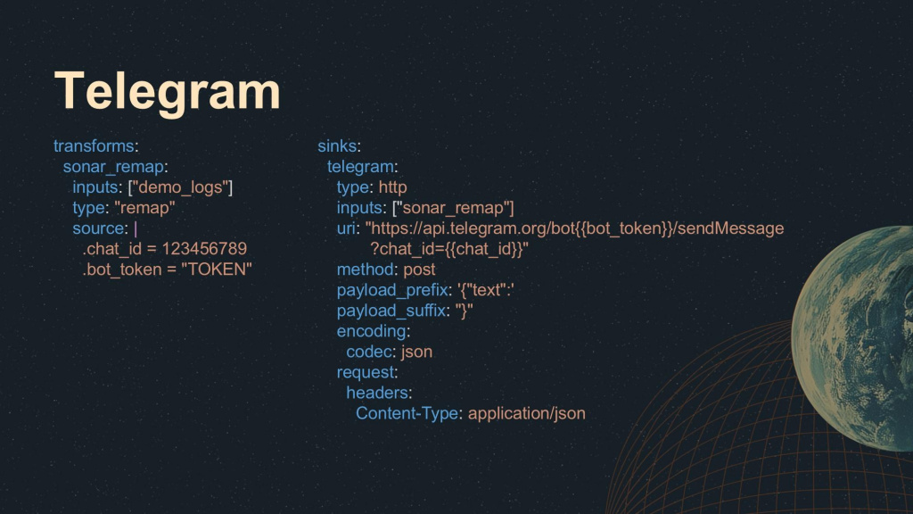 Еще Vector может отправить данные через HTTP-запрос. Это особенно удобно, если нужно интегрироваться с системой, для которой нет готового коннектора – в этом случае можно просто отправить в нее результаты предыдущих этапов обработки HTTP-запросом. Примеры такого использования я тоже покажу.
