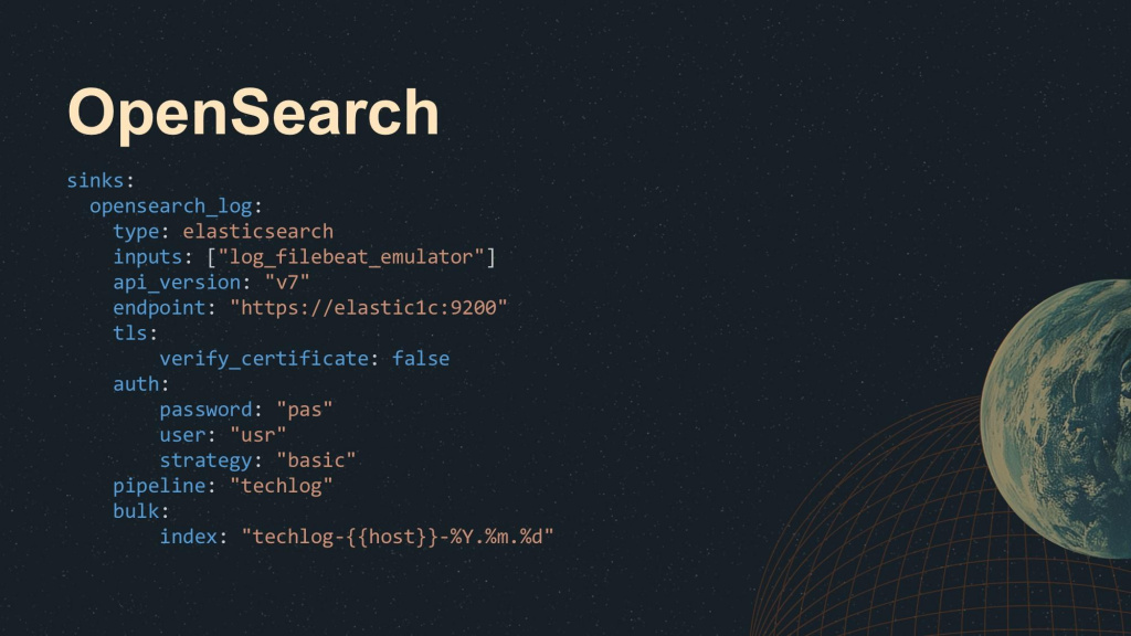 если вы используете OpenSearch, обязательно укажите седьмую версию API, иначе отправка данных в OpenSearch работать не будет