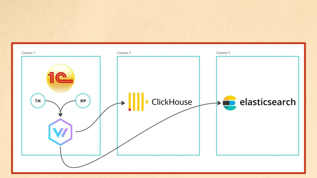 При этом Vector на сервере приложения 1С выполняет максимально простую задачу – читает строки из логов и сразу отправляет их дальше. Такой режим работы очень быстрый, практически не нагружает CPU и не создает ощутимой нагрузки на сервер приложения. Вся тяжелая обработка логов переносится на сервер трансформации, где данные разбираются, а затем отправляются, например, в ClickHouse.