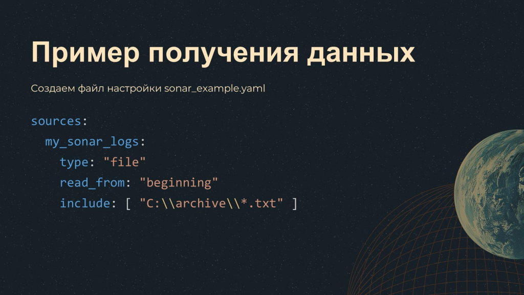 Давайте разберем получение данных на нашем примере. Напомню, мы работаем с логами SonarQube.