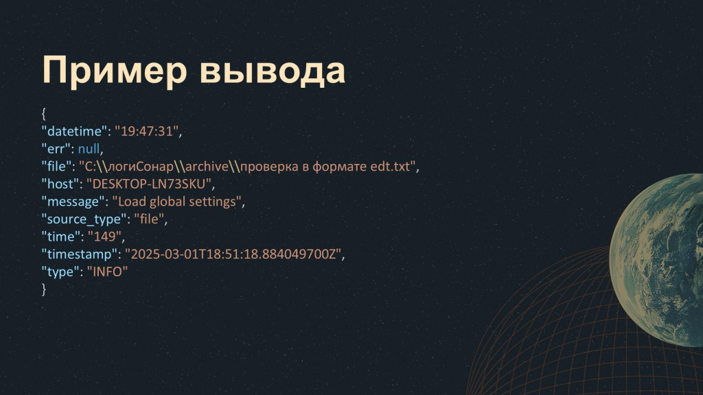 Разные форматы. Одни системы пишут логи в JSON, другие – в XML, третьи используют собственные форматы, как, например, в 1С. Это создает дополнительные сложности при обработке и анализе данных.