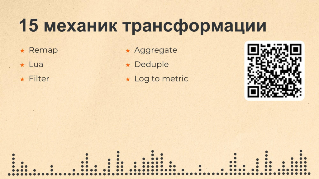Для этого у Vector предусмотрено 15 механик трансформации. На первый взгляд может показаться, что это немного по сравнению с количеством механик получения и отправки данных, но на практике – более чем достаточно.