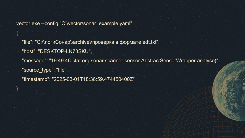 После этого запускаем Vector, передав ему путь к конфигурационному файлу, который мы сформировали выше.
