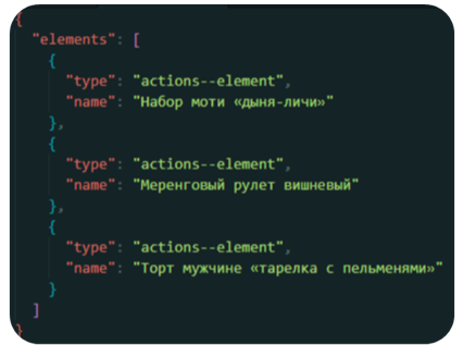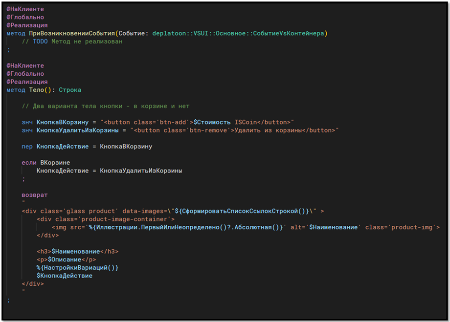 У меня есть еще один пример. В методе тела, о котором я говорил, зашито много логики: наименование, описание, настройки вариаций, кнопка действия. Что это такое?