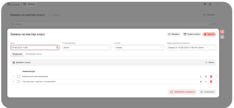 Вторая роль – back-office. Это человек, который обрабатывает заявки через стандартный интерфейс 1С:Элемент. А витрина, то есть пользовательская часть в этом же приложении, реализована на HTML. Логин – demo, пароль – demo.