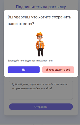 Появляется всплывающее окно, и мы на клиенте, без обращения к серверу, обрабатываем ответ пользователя и выполняем нужные действия в зависимости от выбора.