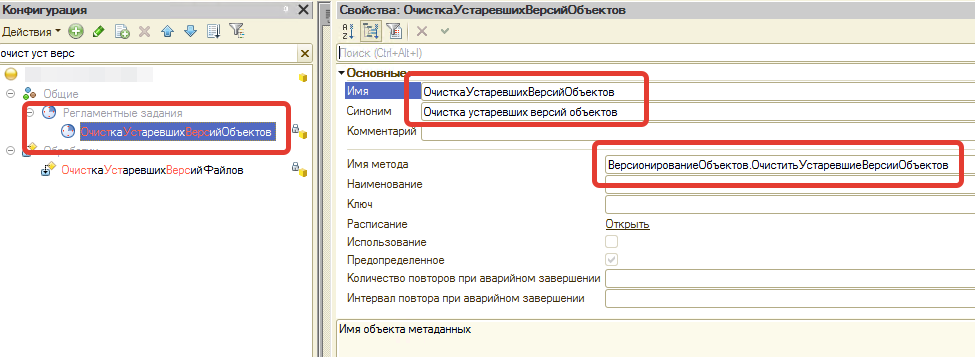 Далее, даже сам регламент так и называется - ОчисткаУстаревшихВерсийОбъектов. Если вдуматься, ну какое удаление. Очистка - это же когда какой-то предмет никуда не девается, просто очищается от чего-то. Как раз записи регистра остаются, просто очищаются от двоичных данных. А с другой стороны, ну какая собственно разница между словами "очистка" и "удаление"? Это же по сути одно и то же.