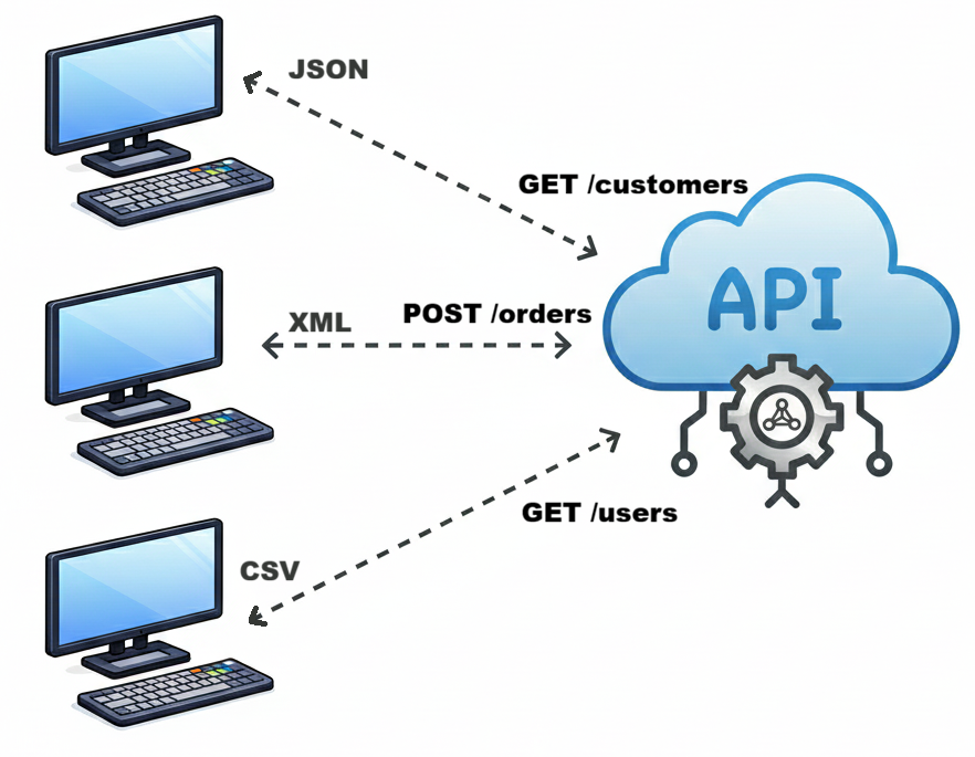 Часто возникает ситуация, когда несколько разных клиентов должны работать с одним и тем же внешним API. В роли клиентов могут выступать различные базы 1С, сайты или другие системы. При этом каждый клиент использует свой набор методов API и ожидает ответ в собственном формате, отличающемся от форматов других клиентов.