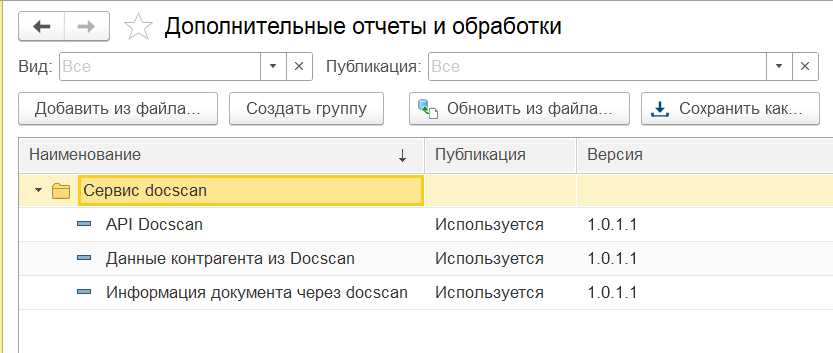 Загружаем созданные модули API и прикладных операций, созданных на шагах 1 - 3, в справочник внешних обработок (например, в справочник Дополнительные отчеты и обработки).