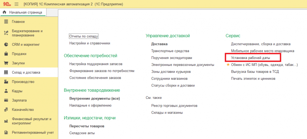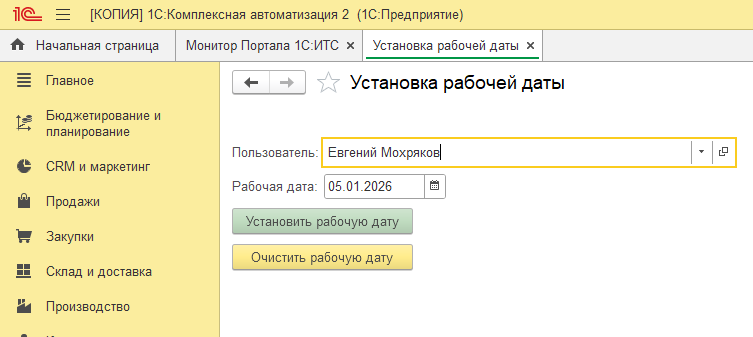 Рабочая дата в 1С:Комплексная автоматизация 2 (2.5)
