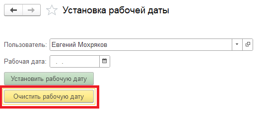 Расширение будет полезно для тех, кто часто вводит документы не на текущую дату, а на другую фиксированную дату ("Рабочую дату"). Первоначально необходимо установить "Рабочую дату" с помощью соответствующей обработки: