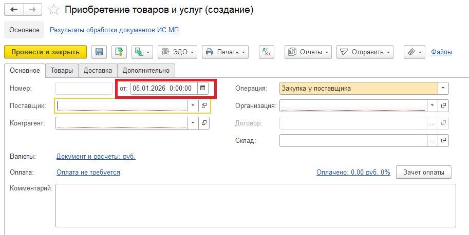 После установки Рабочей даты в новых документах реквизит "Дата" устанавливается из "Рабочей даты":