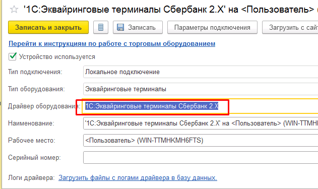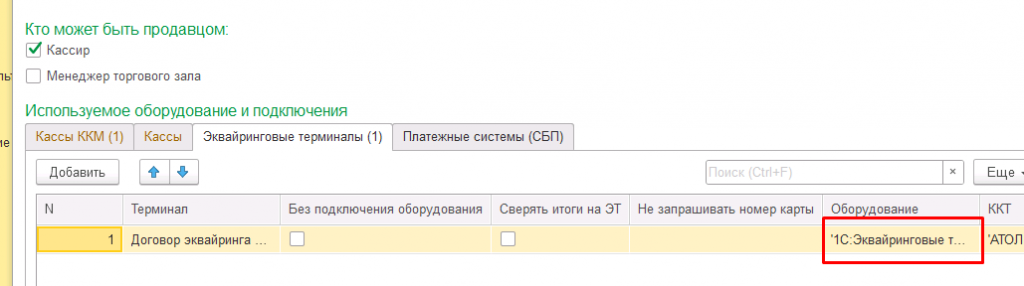 4. Добавьте оборудование в 1С как показано на скриншоте