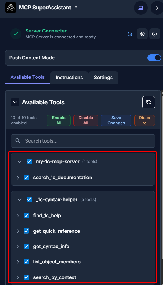 На помощь приходит MCP SuperAssistant — расширение для браузера, которое превращает любой чат с ИИ в полноценного 1С-агента.