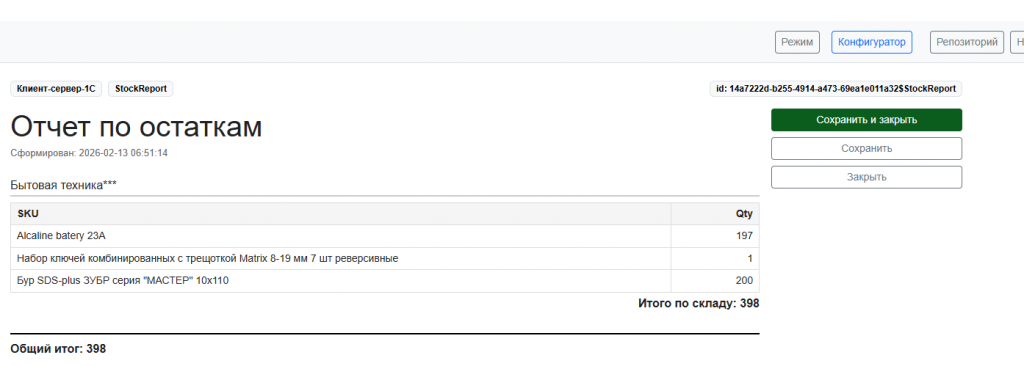 - На сервере ведется учет остатков товаров и формируются отчеты