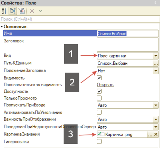 Перетянуть колонку из реквизитов в элементы списка и настроить свойства: