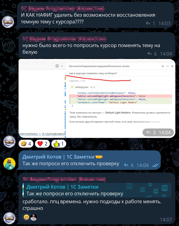 Просите Курсор вам помочь (скриншот из телеграм чата):