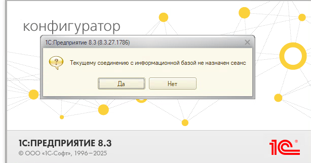 И опа. Выскакивает ошибка SQL – превышено количество подключений, не успевая  заскринить - все это валится, 1С исчезает с экрана. Думаем, ну ладно, бывает. Пытаемся снова войти в конфигуратор, и вот тут-то мы получаем: