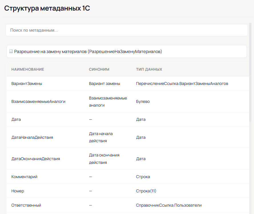 Для настройки маппинга инструменту нужно знать структуру конфигурации 1С: какие объекты есть, какие у них реквизиты, какие типы данных. Это делается через выгрузку XML с метаданными загружаемого объекта.