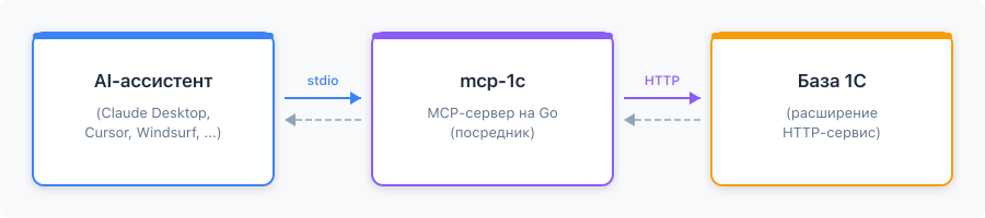 mcp-1c не делает магии. Он делает простую вещь: дает AI-ассистенту доступ к вашей конфигурации. Вместо галлюцинаций про несуществующие реквизиты - точная информация о вашей базе. Вместо копирования метаданных в промпт - автоматический запрос того, что нужно.