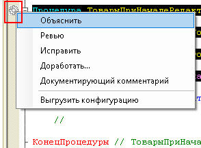 Открываешь нужный модуль в Конфигураторе, нажимаешь «Получить код» — текст попадает в редактор приложения. Дальше просишь ИИ сделать рефакторинг, добавить комментарии, найти ошибку — что нужно.