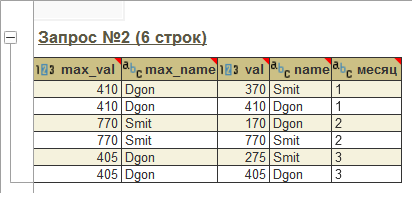 Такая конструкция позволяет не только получить максимальное значение val за месяц и сразу узнать какому сотруднику оно принадлежит.