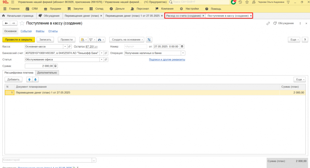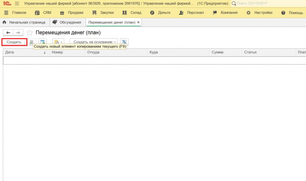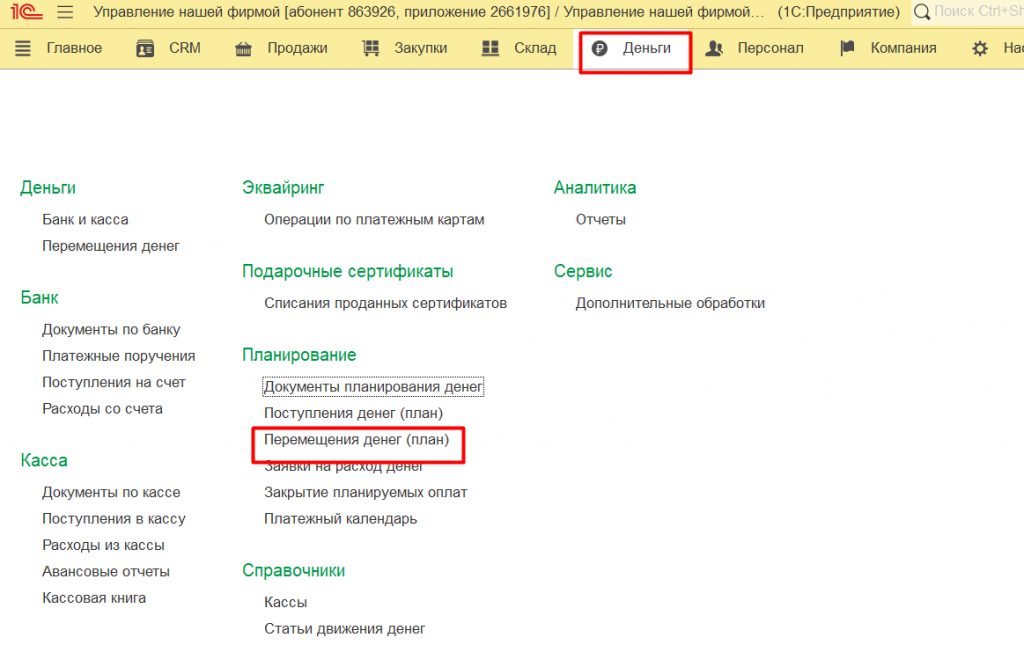 Настройка плана перемещения денег в 1C: УНФ
