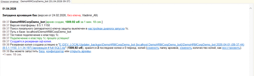 - Обновлятор 1С — готовое решение для бэкапов, не нужно писать скрипты