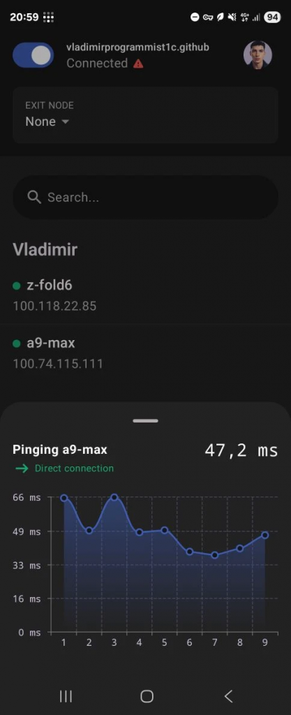 📸 Tailscale VPN на мобильном устройстве — статус подключения