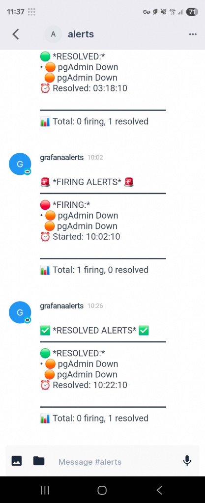 | Уведомления JSON вместо текста | 30 мин | Content-Type: text/plain + шаблоны Grafana |
