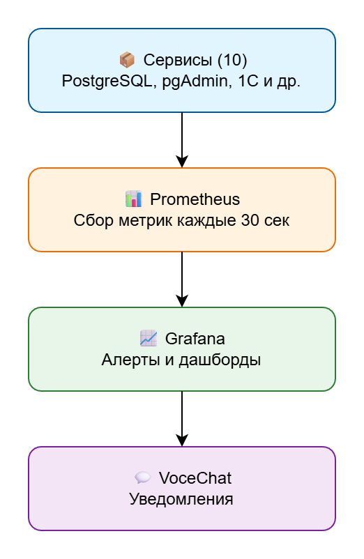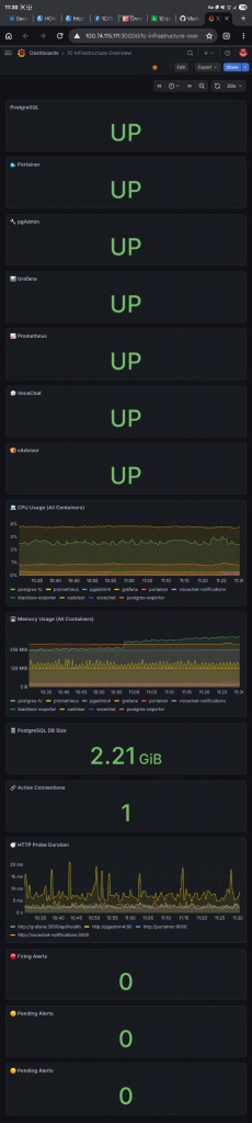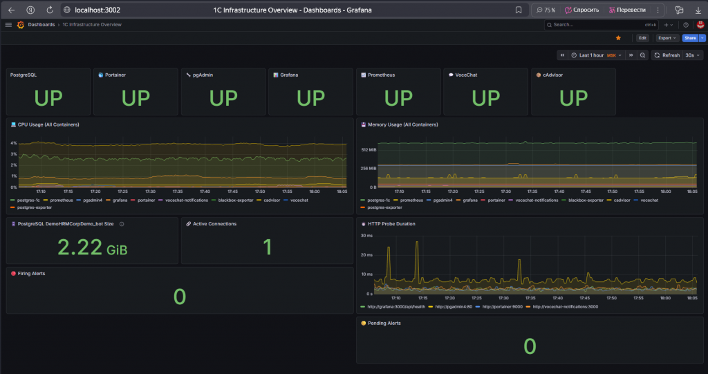 Результат: полностью работоспособная инфраструктура 1С + PostgreSQL + мониторинг + документация 🟢