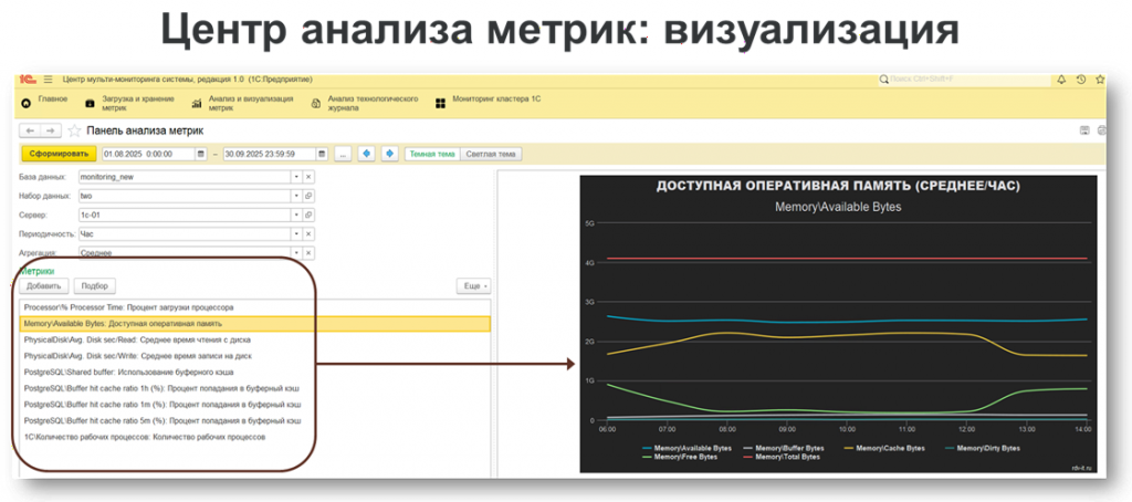 На иллюстрации ниже показан инструмент для визуализации метрик.