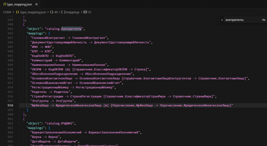 - Поддержать ручные и автоматические маппинги полей, типов и перечислений.