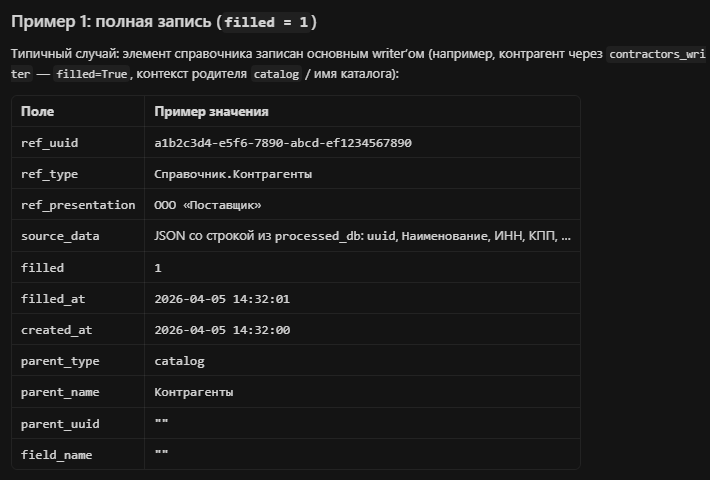 Одна из самых полезных частей решения это отдельная база reference_objects, которая заполняется на этапе экспорта.