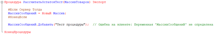 МассивСообщений.Добавить("Тест процедуры");  // Ошибка на клиенте: Переменная 'МассивСообщений' не определена