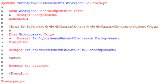 • #Если ... #ИначеЕсли ... #КонецЕсли - условная компиляция в зависимости от окружения, позволяет исключить части кода, которые недоступны в определенном контексте.