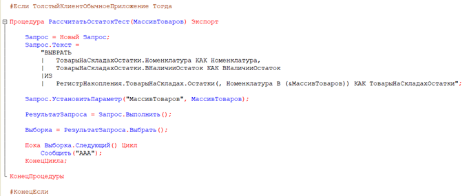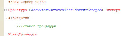 В модулях объектов и менеджеров контекст определяется платформой автоматически. В 99% случаев в современном управляемом приложении модуль менеджера исполняется на сервере. Однако для обеспечения универсальности и корректной работы в «толстом клиенте» используются инструкции препроцессора. Они физически вырезают куски кода из компиляции в определенных режимах.