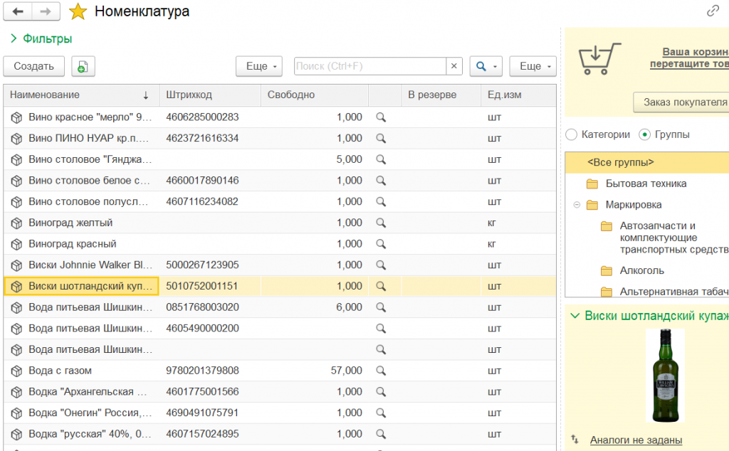 |    ШтрихкодыНоменклатуры.Номенклатура В (&Номенклатура");