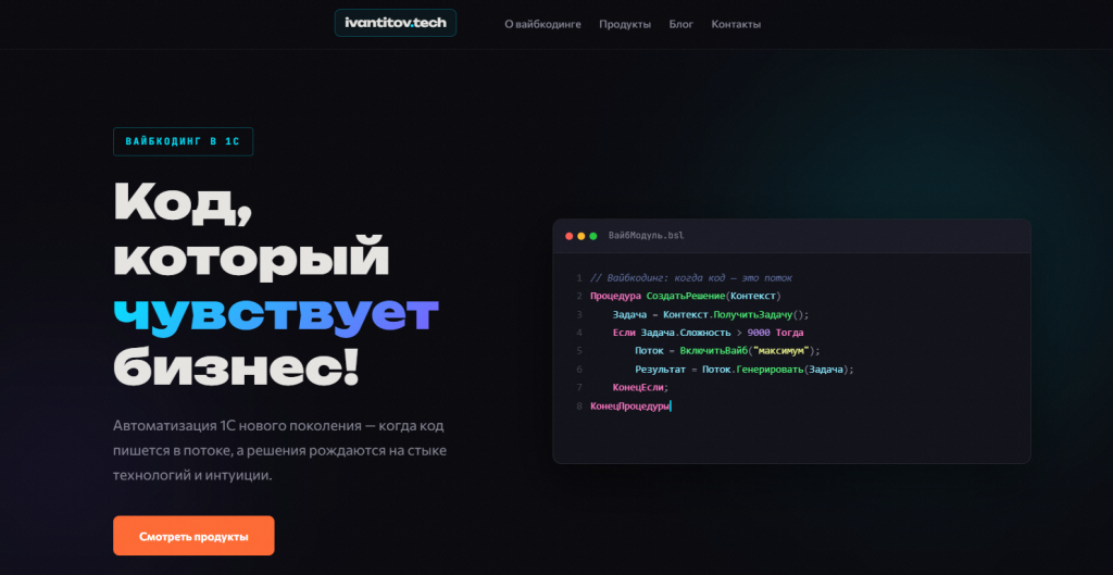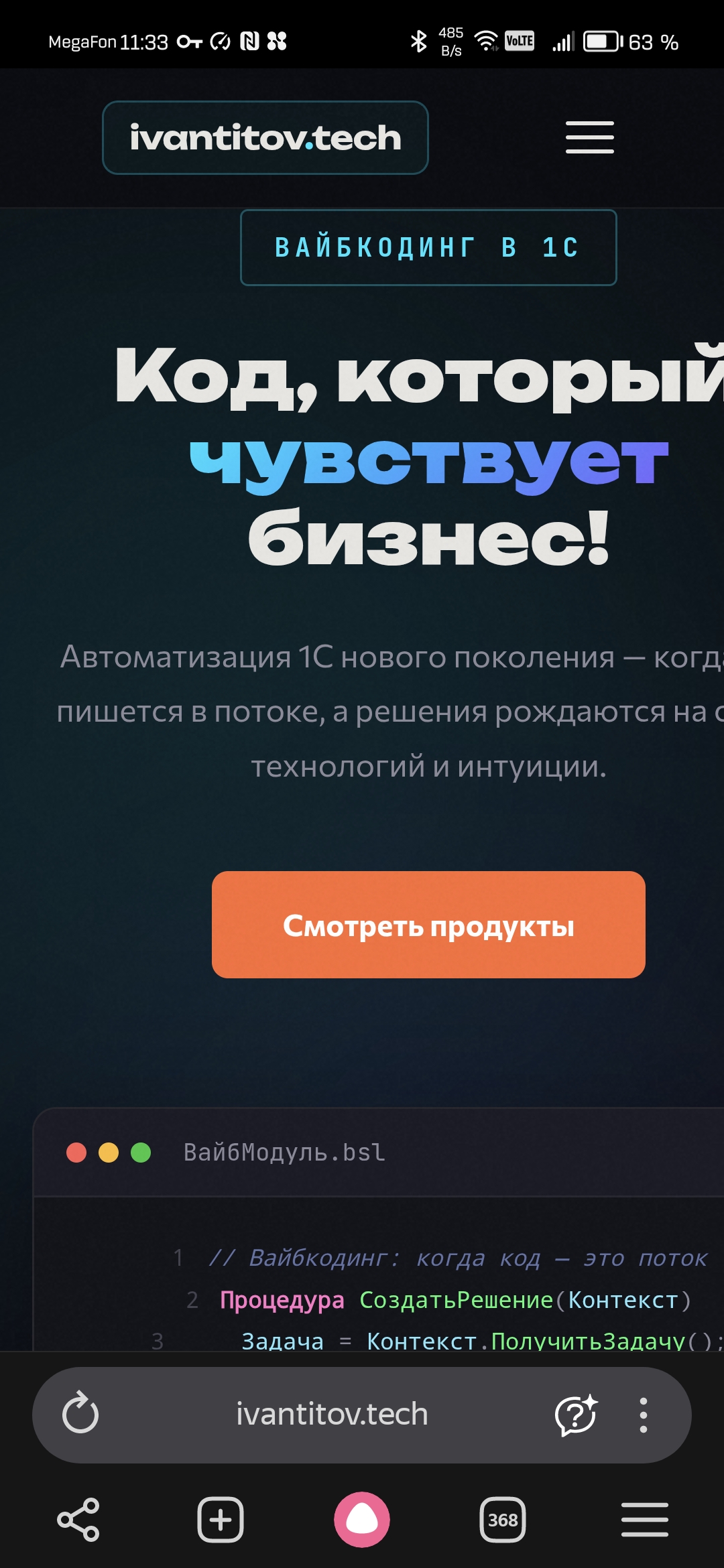 Первое — порог входа во «всё, что не 1С», резко упал. Раньше я смотрел на фронт как на отдельную профессию, в которую надо вкладываться месяцами. Сейчас на типовых задачах (лендинг, простая админка, форма) это уже не так. ИИ закрывает 80% работы, остаётся доработать тексты и нюансы.