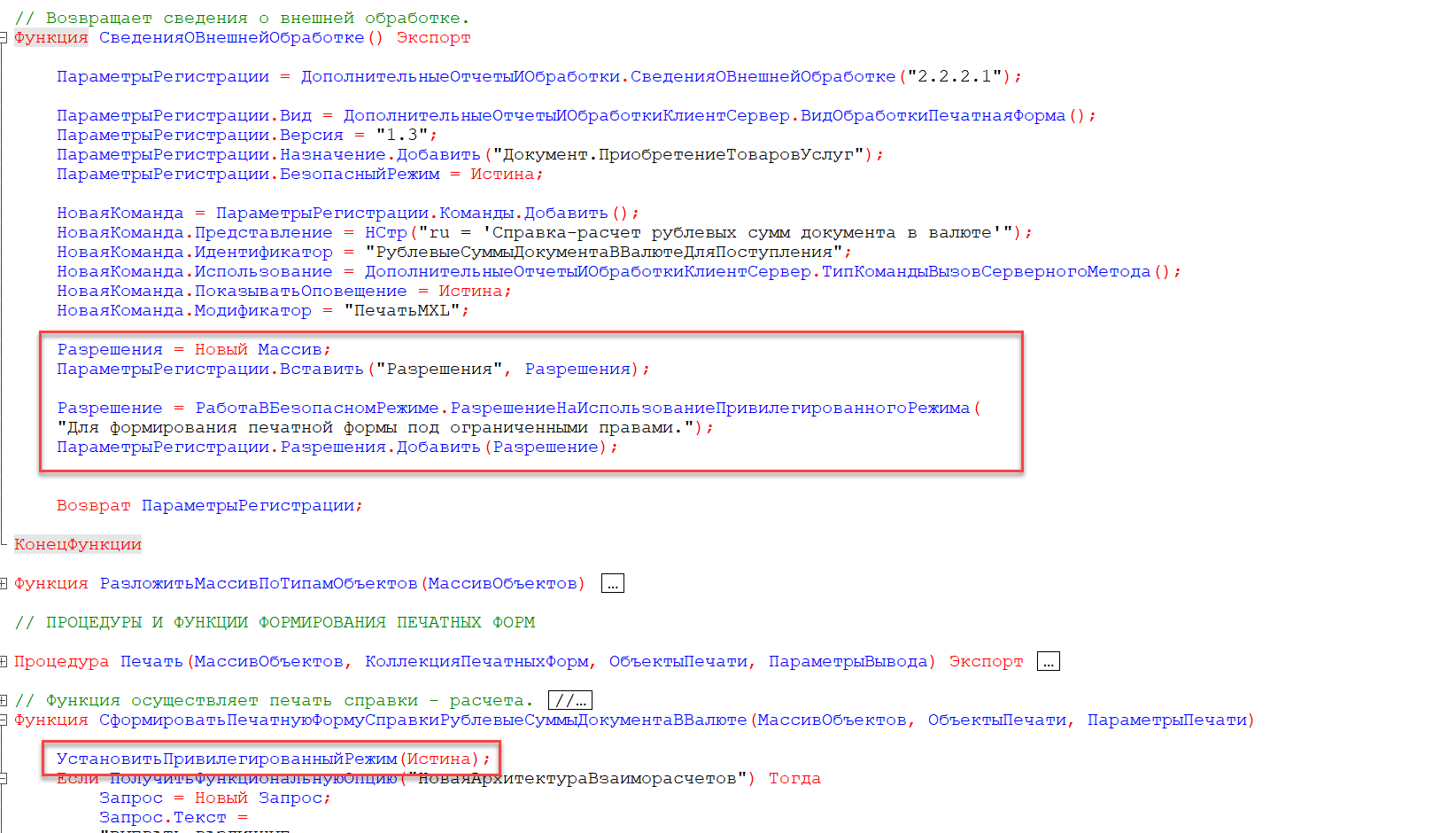 Печатные формы будут работать только на валютных документах, у которых есть движения по