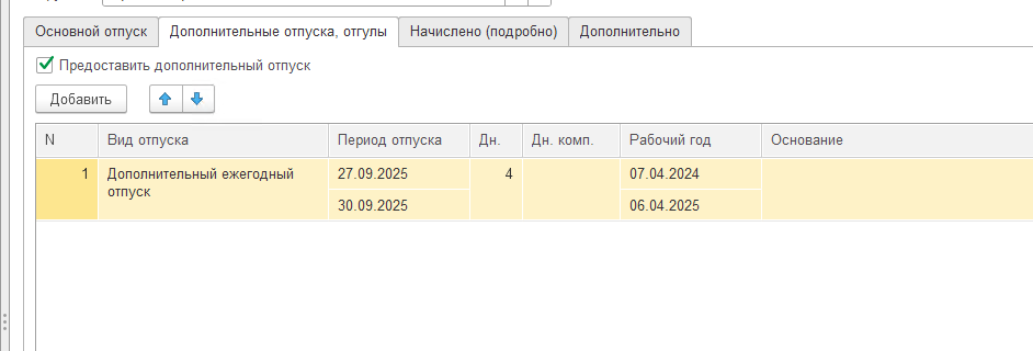 Данная печатная форма подключается к документу "Отпуск сотрудников"