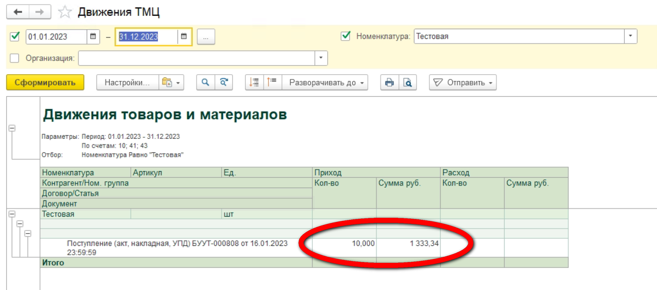 - Цена поступления ТМЦ, рассчитываются как Стоимость ТМЦ из колонки Приход / количество из колонки Приход