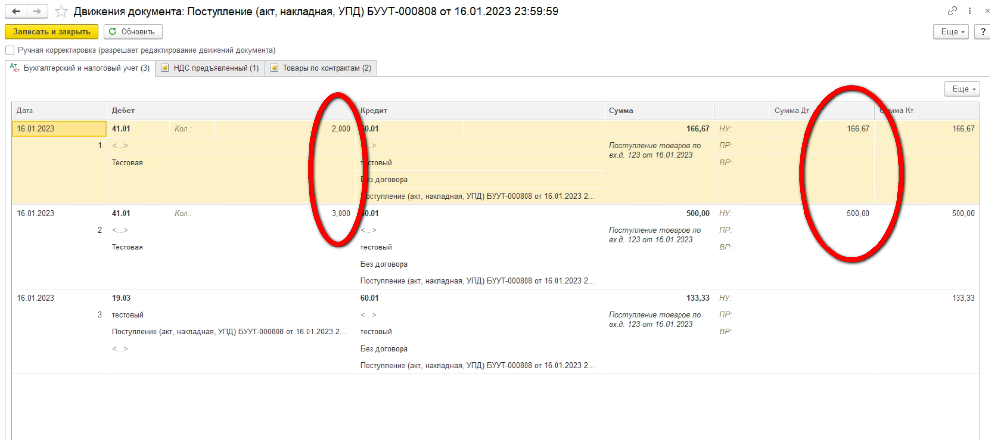 Небольшое изменение группировок – и можно сформировать реестр поступлений товаров и материалов с нужными разрезами.