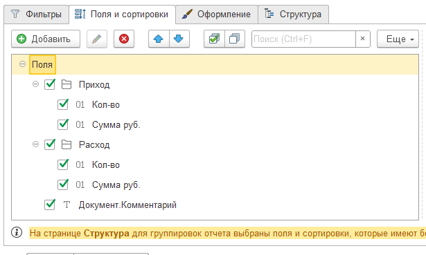Рис. 4. Отчет по поступлениям для БП КОРП - группировки