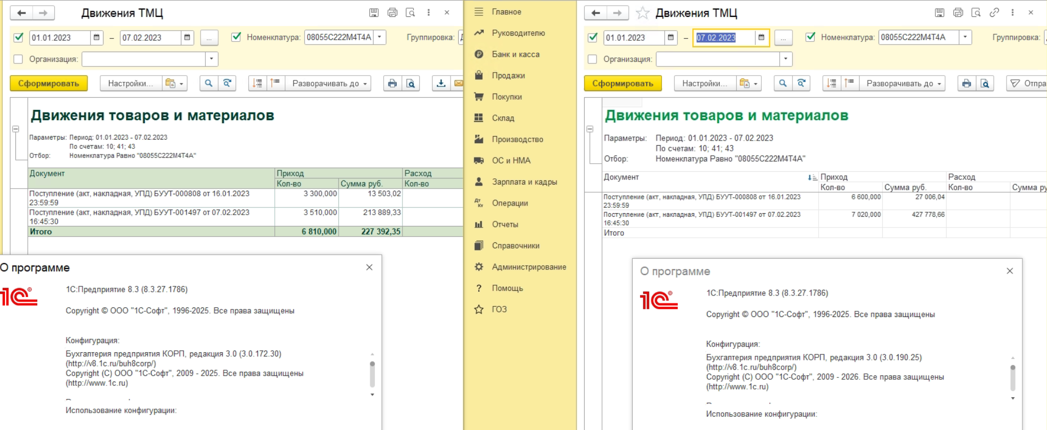 Отчет версии КОРП подходит только для БП КОРП с включенными подразделениями на счетах учета ТМЦ. В этой версии отчета есть группировка и отбор по подразделениям.