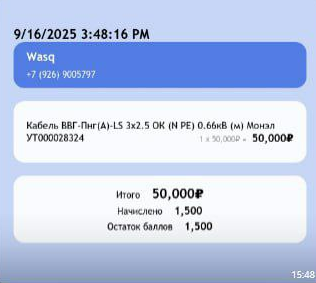 Далее происходит автоматическая привязка аккаунта в Телеграм и существующей бонусной карты в 1С.