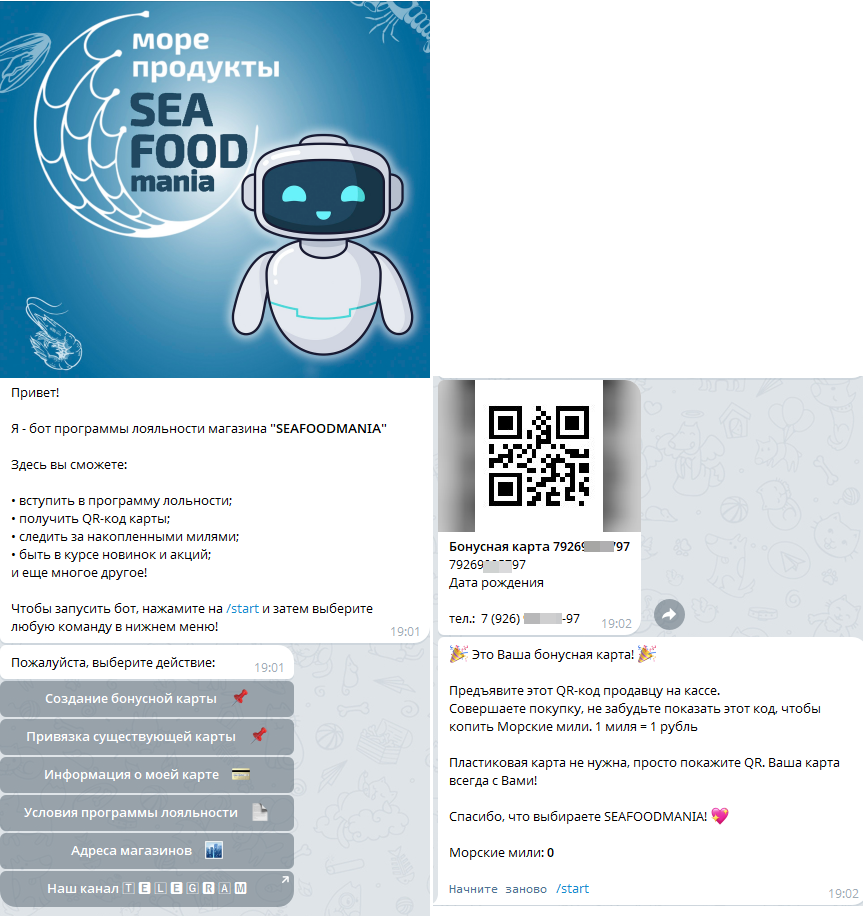 Бот можно попробовать в приложении Телеграм самостоятельно ( наберите в поиске Телеграм @sf_bonus_bot ), только вам нужно быть клиентом этого магазина.